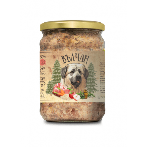 Бурканите на Вълчан са ежедневна храна за кучета. Приготвени са от месо, зеленчуци и хранителни добавки. Готви се в буркан чрез стерилизация. По този начин всички полезни вещества остават в буркана, което прави менюто питателно, вкусно и здравословно. Натурална храна без консерванти, овкусители и оцветители.